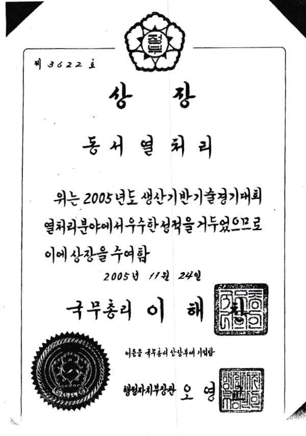 생산기반기술경기대회 QT열처리부문 국무총리상 (2005년)