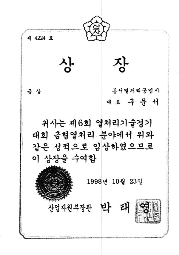 열처리기술경기대회 금형열처리부문 산업자원부장관상 (1998년)