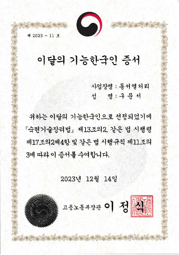 전국생산기반기술경기대회 침탄열처리부문 장관상 (2004년)