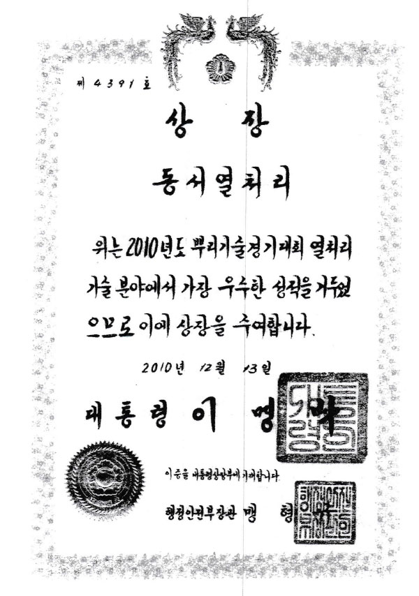 생산기반 기술경기대회 지식경제부장관상 (2009년)